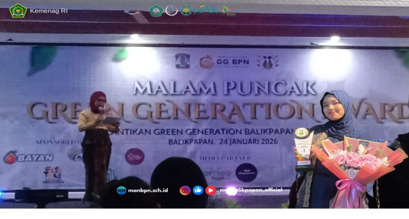 Penghargaan tersebut diserahkan dalam acara Malam Puncak Green Generation Award yang digelar pada Sabtu (24/1/2026) di Aula Rumah Jabatan Wakil Walikota Balikpapan. Dalam momen bersejarah ini, MAN Balikpapan diwakili oleh siswi berprestasi, Fina, dengan didampingi langsung oleh Pembina Green Generation MAN Balikpapan, Ibu Willy Hatuwe.